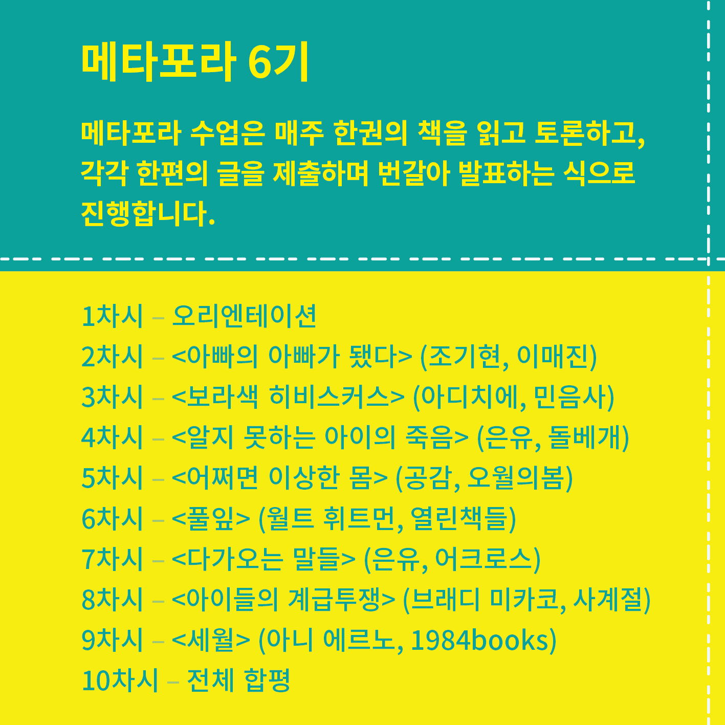 | 은유 글쓰기 - 메타포라 5기 강좌 안내 (3) | 2019.05.23 |