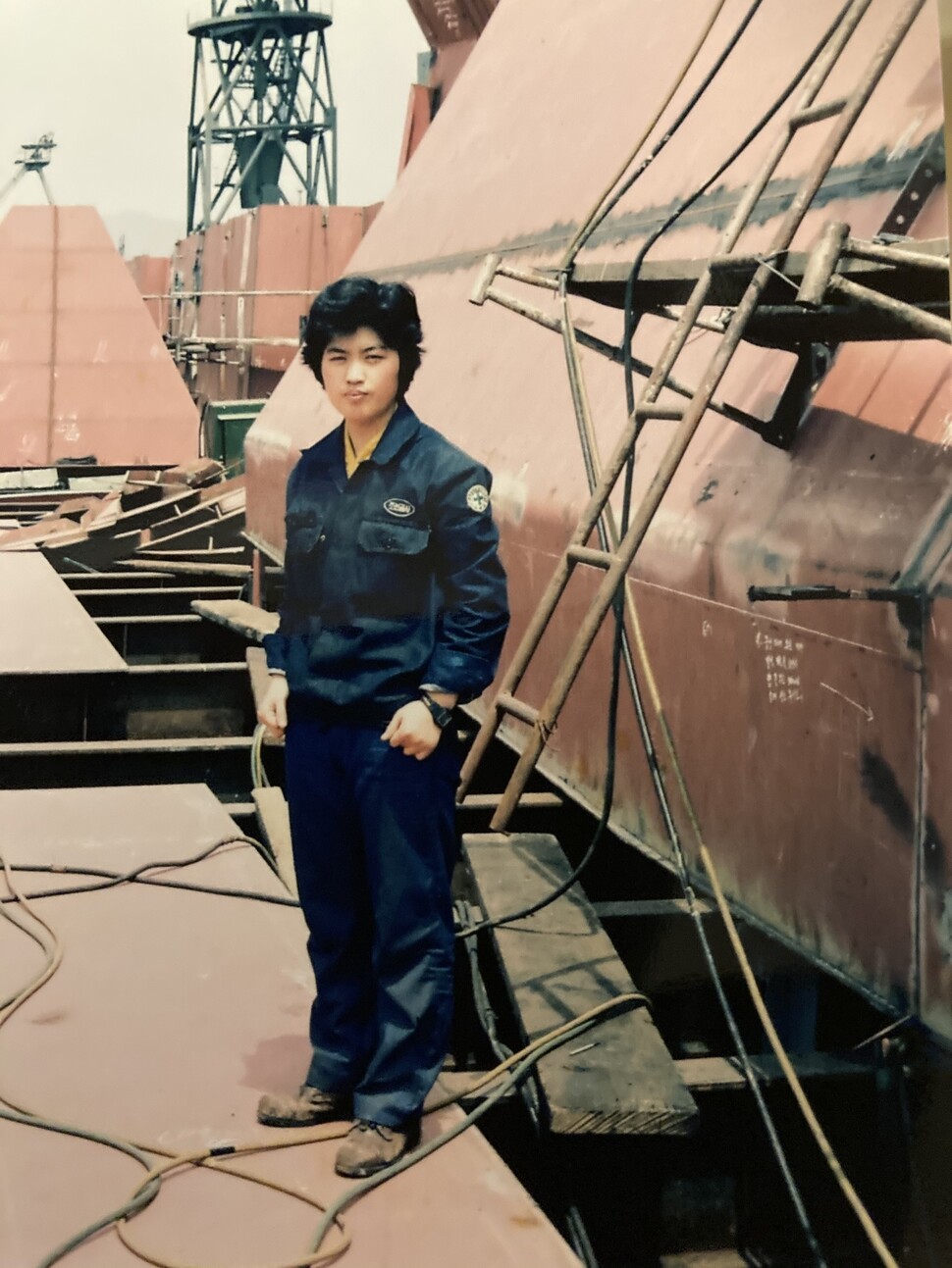 대한조선공사(현 한진중공업) 용접노동자 입사 4년째 되던 1984년의 모습. 안전시설이 제대로 갖춰지지 않아 추락사고가 잦을 때였다. 김진숙 제공