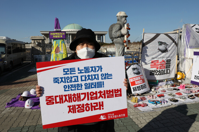 “좀 힘이 쭉 빠지고, 중대재해기업처벌법 정부안을 보고 잠을 못 잤어요. 누더기 법안을 만드니까 스트레스 때문이에요.”