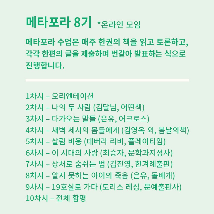 | 메타포라 6기 신청안내 -30일 정오12시 (5) | 2020.01.29 |