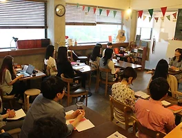 ▷ 카페 장기 대여 방식으로 공간을 마련했습니다. 매주 시간당 대관료를 내고 참석자가 일인일메뉴를 시키는 카페의 운영 방식에 따릅니다.